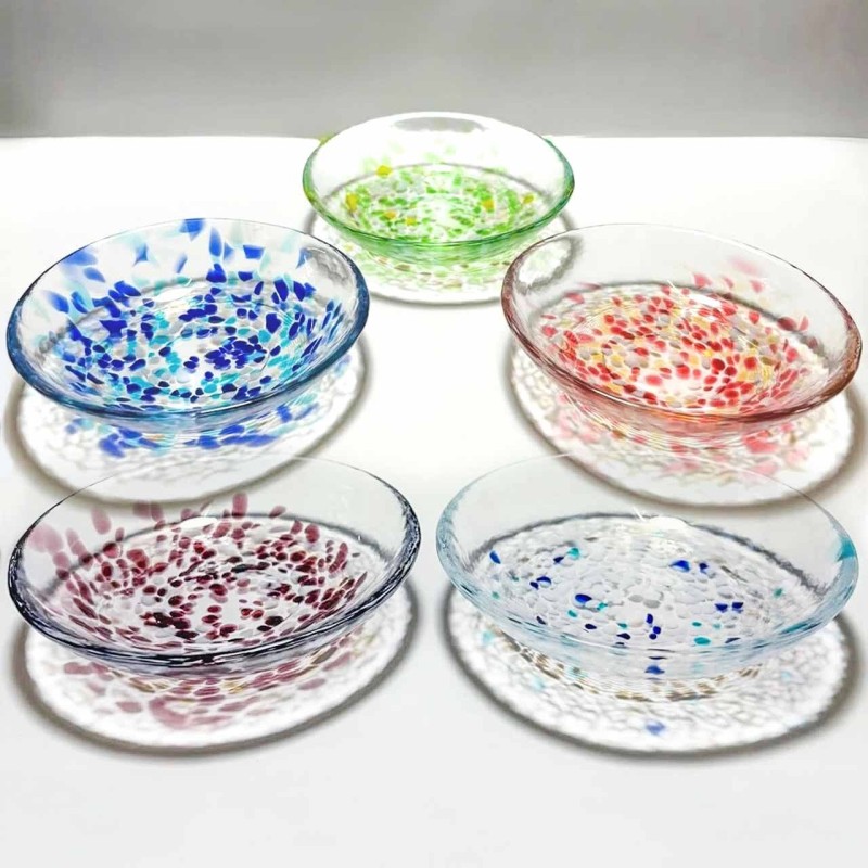 虹のスキャット こなゆき 小皿543 ¥1,980(税込) 数量 1 カートに入れる 特商法に基づく表記(返品等) 色彩ガラスの粒(チップ)をしずくのように降らせて生まれた 歌声のようなガラス食器シリーズ。 職人がひとつひとつ丹精込めてつくりあげる ジャズの即興(スキャット)を思わせる粋な華やぎを、 どうぞお楽しみください。