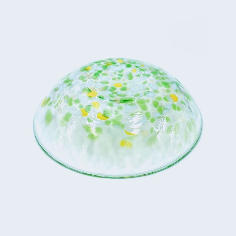虹のスキャット わかくさ 小皿537 ¥1,980(税込) 数量 1 カートに入れる 特商法に基づく表記(返品等) 色彩ガラスの粒(チップ)をしずくのように降らせて生まれた 歌声のようなガラス食器シリーズ。 職人がひとつひとつ丹精込めてつくりあげる ジャズの即興(スキャット)を思わせる粋な華やぎを、 どうぞお楽しみください。